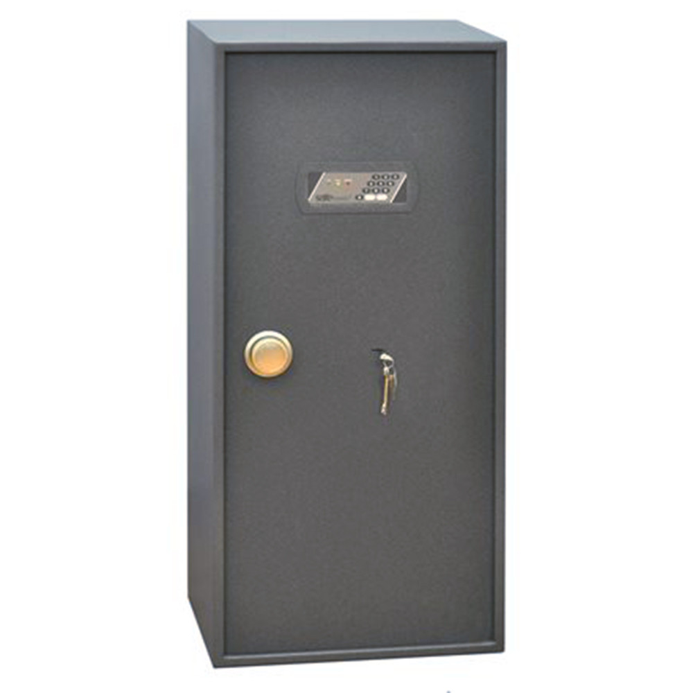 • minőségi trezor dokumentumoknak, értéktárgyaknak• 2,5 mm-es egyfalú trezor test, erős acéllemezből• 40 mm vastag duplafalú ajtó, 3 mm-es acél borítással• 90 fokos ajtónyitás erős jobboldali zsanérokkal• egyirányú (ZSL 17, 28, 43) vagy háromirányú (ZSL 65, 100, 120) zárás 22 mm-es forgó acél hevederekkel• mangán acéllappal védett zárszerkezet (fúrás ellen)• elektronikus számkombinációs zár• süllyesztett fólia billentyűzet, belső elemtartó• 3-8 számjegy közötti felhasználói kód• mechanikus vésznyitás (duplatollú kulcsos zárral)• zár 4 db Mignon LR 6 AA 1,5V elemmel működik• kilincs 25 mm-t áll ki az ajtó síkjából• praktikus iratrendező mélység• kivehető, állítható magasságú polc• 65-ös mérettől zárható belső trezorral• 10 mm-es rögzítő furatok lefelé és hátrafelé• gránit színben, 2 db vésznyitó kulccsal szállítjuk