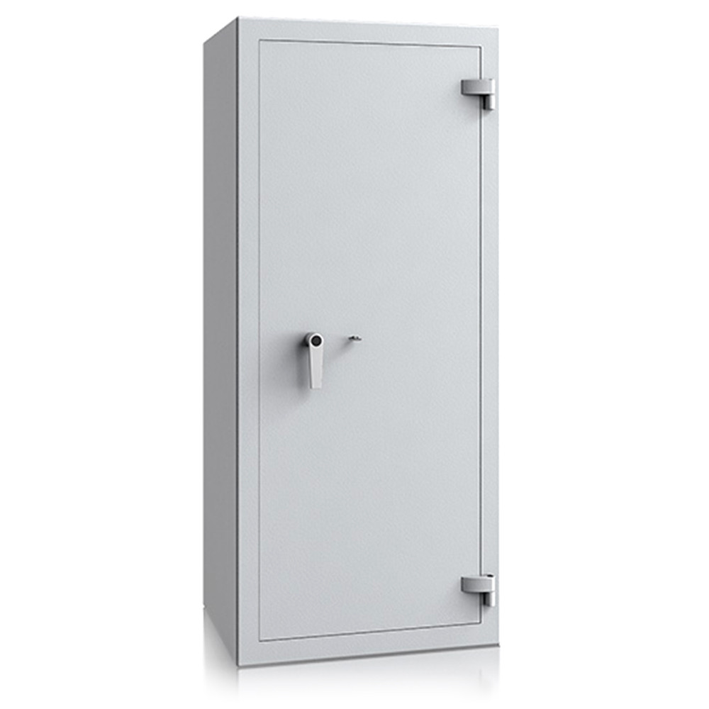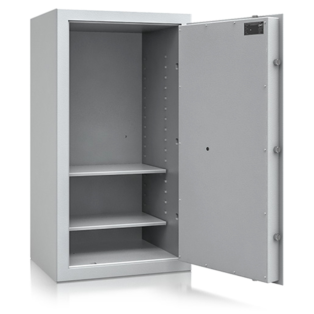 • duplafalú kompakt acél test az optimális védelemért• 80 mm vastag, duplafalú ajtó, 6 mm-es acél borítással• 180 fokos ajtónyitás a külső zsanéroknak köszönhetően• háromirányú zárás, 25 mm-es kerek, acél hevederekkel• erős acél rögzítő rudak a zsanéroldalon• felfúrás ellen mangán acéllappal védett zárszerkezet• tűzálló szigetelés a testben és az ajtóban• állítható magasságú polcok• rögzítő furat hátrafelé és lefelé• világosszürke (RAL 7035) szín