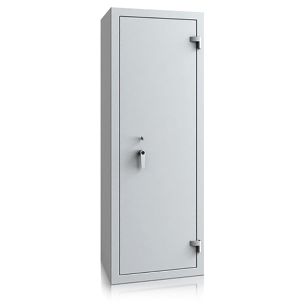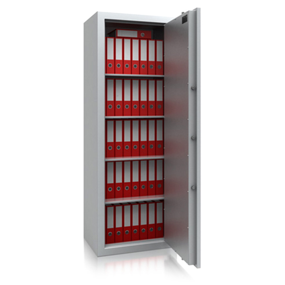 • 30 mm vastag, duplafalú test 1,5 mm-es acélból• 81 mm vastag, duplafalú ajtó 3 mm-es acél borítással• 180 fokos ajtónyitás a külső zsanéroknak köszönhetően• háromirányú zárás, 25 mm-es kerek, acél hevederekkel• erős acél rögzítő rudak a zsanéroldalon• felfúrás ellen mangán acéllappal védett zárszerkezet• tűzálló szigetelés a testben és az ajtóban• Potsdam 5 és 6 duplaszárnyú ajtóval készül• állítható magasságú polcok• rögzítő furatok nélkül• világosszürke (RAL 7035) szín