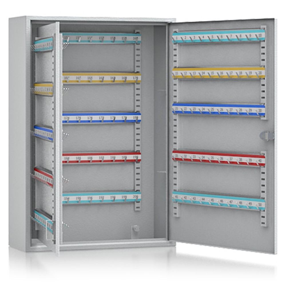 • szimplafalú acél ház• egyszárnyú acél ajtó• lapozható belső kulcstartó fal• állítható magasságú rozsdamentes akasztólécek• kulcsjegyzék forgatható műanyag tasakban• cilinderzár kettő darab kulccsal• négy rögzítő furat hátrafelé• világosszürke (RAL 7035) színben