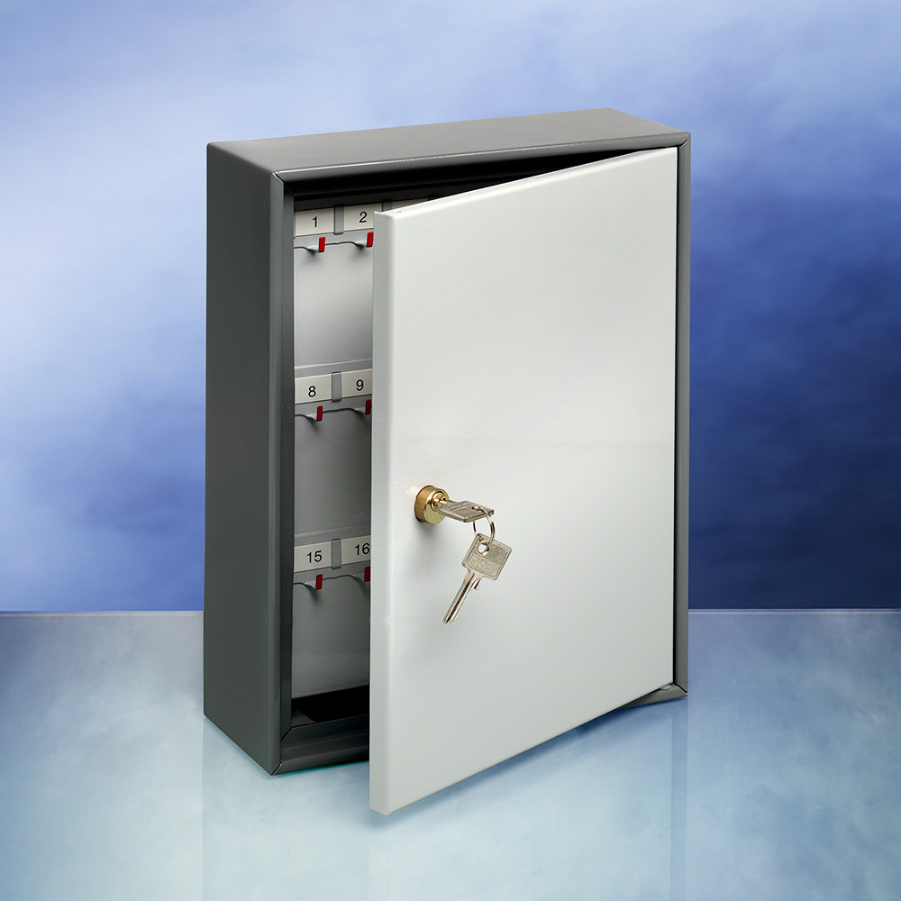 • masszív kulcsszekrény• erős acéllemez ház és ajtó• masszív zsanérozás• kihajtható kulcsakasztó tábla• egyszerű négyszögletes forma• számozott kulcsakasztók• kulcsjegyzék az ajtó belső oldalán• minőségi 5 csapos cilinderzár• kettő darab kulccsal• falra szerelhető• többféle méretben• sötétszürke színű ház• világosszürke ajtóval• rögzítő csavarokkal• nyerskulcs típusa: 65R• V-PZ: félcilinderes zárbetét behelyezésére való előkészítéssel is rendelhető (meglévő zárrendszerhez illeszthető)