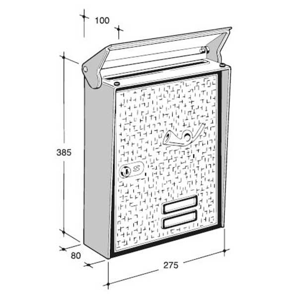 • kapun, kerítésen kívülre szerelhető postaláda• anyaga horganyzott acéllemez • műanyag porszórással színezett• elegáns megjelenésű minőségi postaláda• felső bedobónyílás felhajtható tetővel• oldalra nyíló ajtó• nagy befogadóképesség• betekintő nyílás és névtartó• krómozott postaláda zár• kettő darab kulccsal• többféle színben rendelhető• exkluzív kivitel