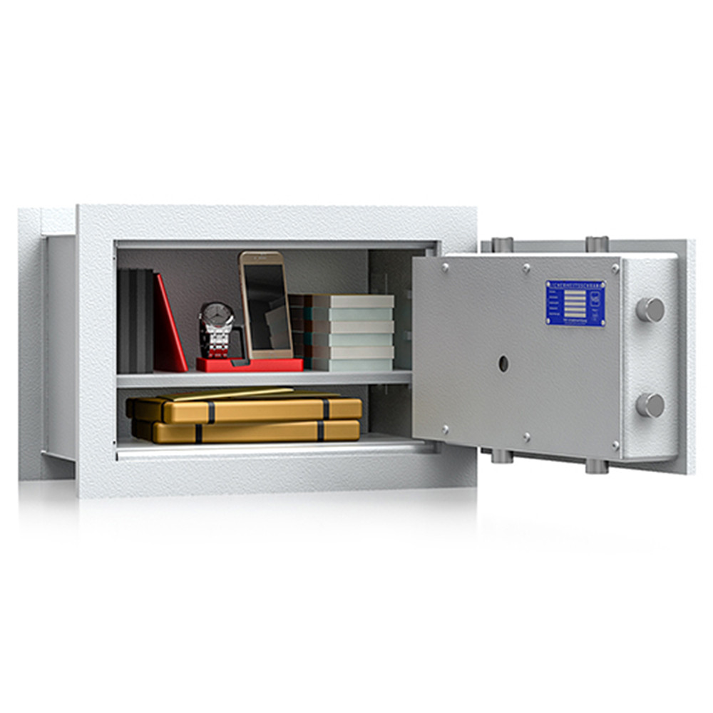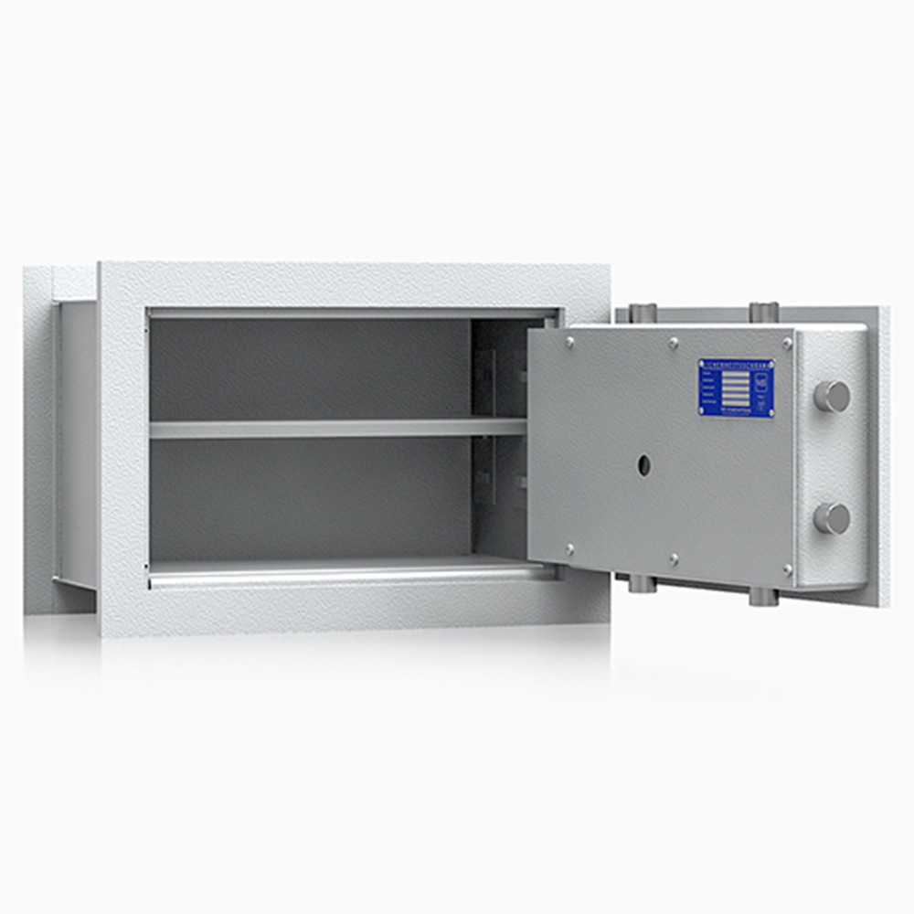 • 5 mm vastag erős acél test• 85 mm vastag, kétrétegű ajtó, 12 mm-es acél borítással• 90 fokos ajtónyitás rejtett zsanérokkal• négyirányú zárás, 25 mm-es kerek, acél hevederekkel• felfúrás ellen mangán acéllappal védett zárszerkezet• süllyesztett fém kilincs• állítható magasságú polcok• világosszürke (RAL 7035) szín