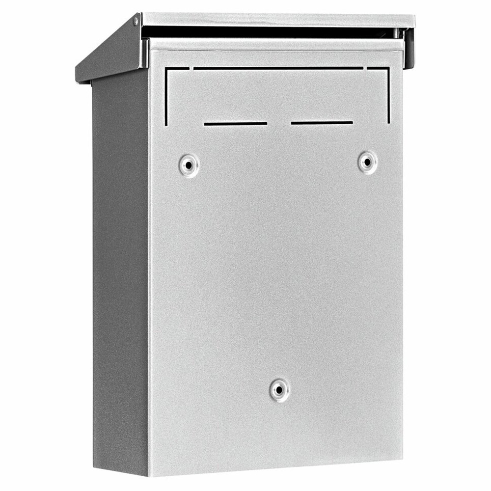 •kapun, kerítésen kívülre szerelhető postaláda•anyaga horganyzott acéllemez•műanyag porszórással színezett•időjárásálló lakkozás•hagyományos megjelenésű kültéri levélszekrény•felső bedobónyílás felhajtható tetővel•lefelé nyíló ajtó, névtartóval•krómozott postaláda zár•kettő darab kulccsal•többféle színben