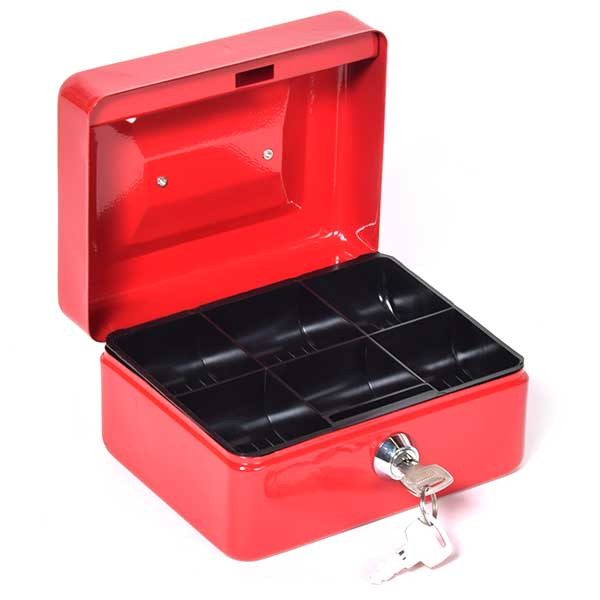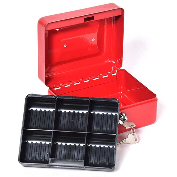 • acéllemez pénzkazetta• rejtett belső zsanérozás• négyszögletes forma lekerekített élekkel• süllyesztett fém fogantyú• kivehető műanyag aprópénztartó• alatta hely a bankjegyeknek• krómozott lamellás zár• kettő darab kulccsal• többféle méretben és színben
