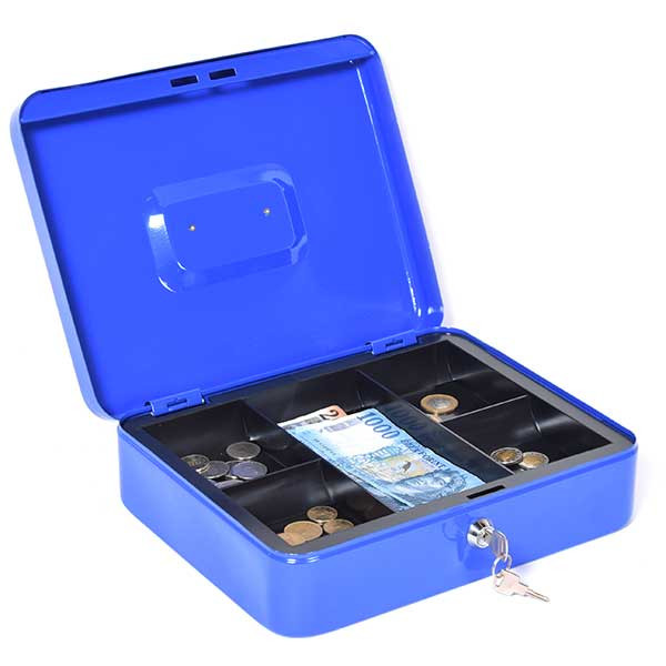 • acéllemez pénzkazetta• rejtett belső zsanérozás• négyszögletes forma lekerekített élekkel• süllyesztett fém fogantyú• kivehető műanyag aprópénztartó• alatta hely a bankjegyeknek• krómozott lamellás zár• kettő darab kulccsal• többféle méretben és színben