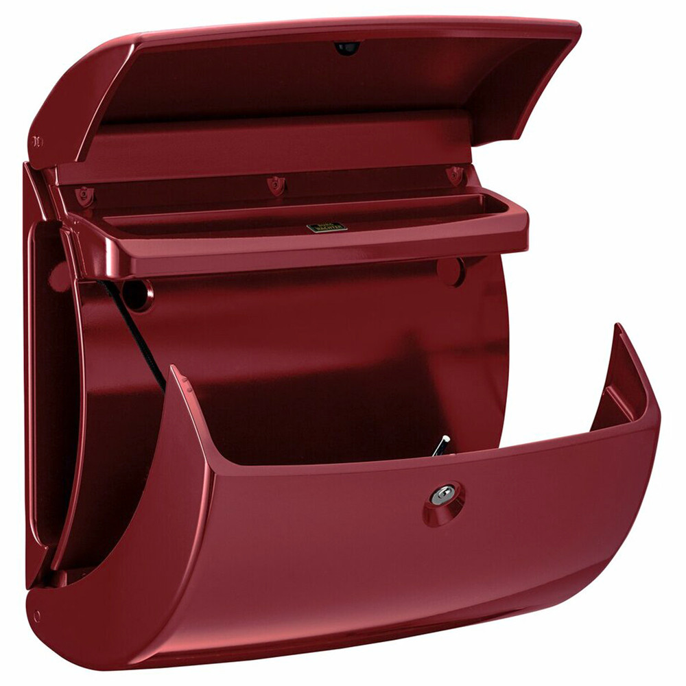 • kapun, kerítésen kívülre szerelhető műanyag postaláda• egybeépített, mindkét végén nyitott újságtartóval• exkluzív magasfényű lakkozás• anyaga masszív UV álló műanyag• extrém időjárásálló kivitel• lágy vonalvezetésű modern kültéri postaláda• felső bedobónyílás felhajtható tetővel• biztonságos ürítés érdekében nyitáshatárolóval ellátott lefelé nyíló ajtóval• EN 13724 szabványnak megfelelő levélszekrény• krómozott 5 csapos postaláda zár• kettő darab kulccsal• rögzítő csavarokkal• nyerskulcs típusa: 65R