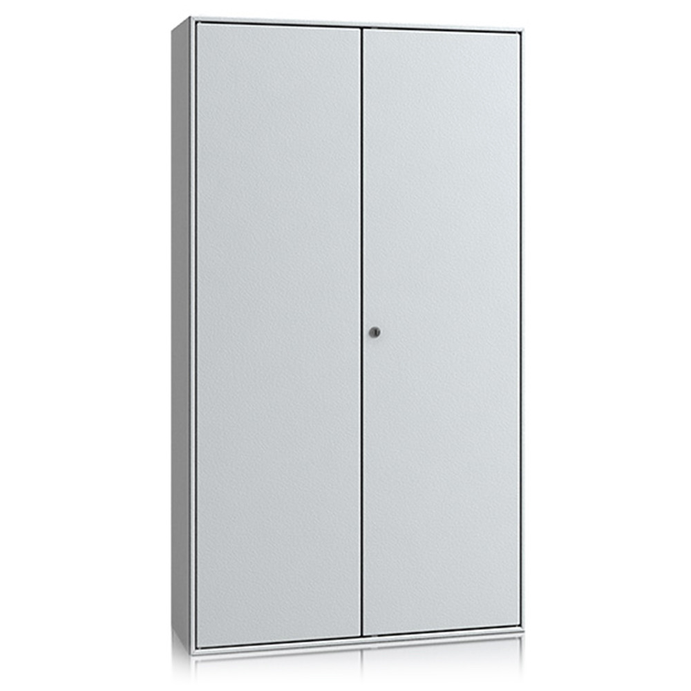 • szimplafalú acél ház• kétszárnyú acél ajtó• lapozható belső kulcstartó fal• állítható magasságú rozsdamentes akasztólécek• kulcsjegyzék forgatható műanyag tasakban• cilinderzár kettő darab kulccsal• négy rögzítő furat hátrafelé• világosszürke (RAL 7035) színben
