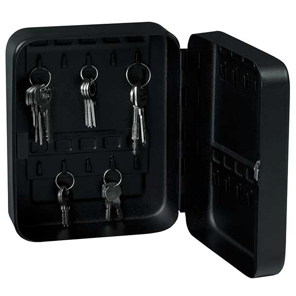 • kulcskazetta 20 vagy 46 kulcsakasztóval• erős acéllemez ház és ajtó• masszív rejtett zsanérozás• négyszögletes forma lekerekített élekkel• számozott fix akasztók• krómozott lamellás zár• kettő darab kulccsal• falra szerelhető (két rögzítő furat hátrafelé)• fekete színben, rögzítő csavarokkal, jelölő matricákkal áruljuk