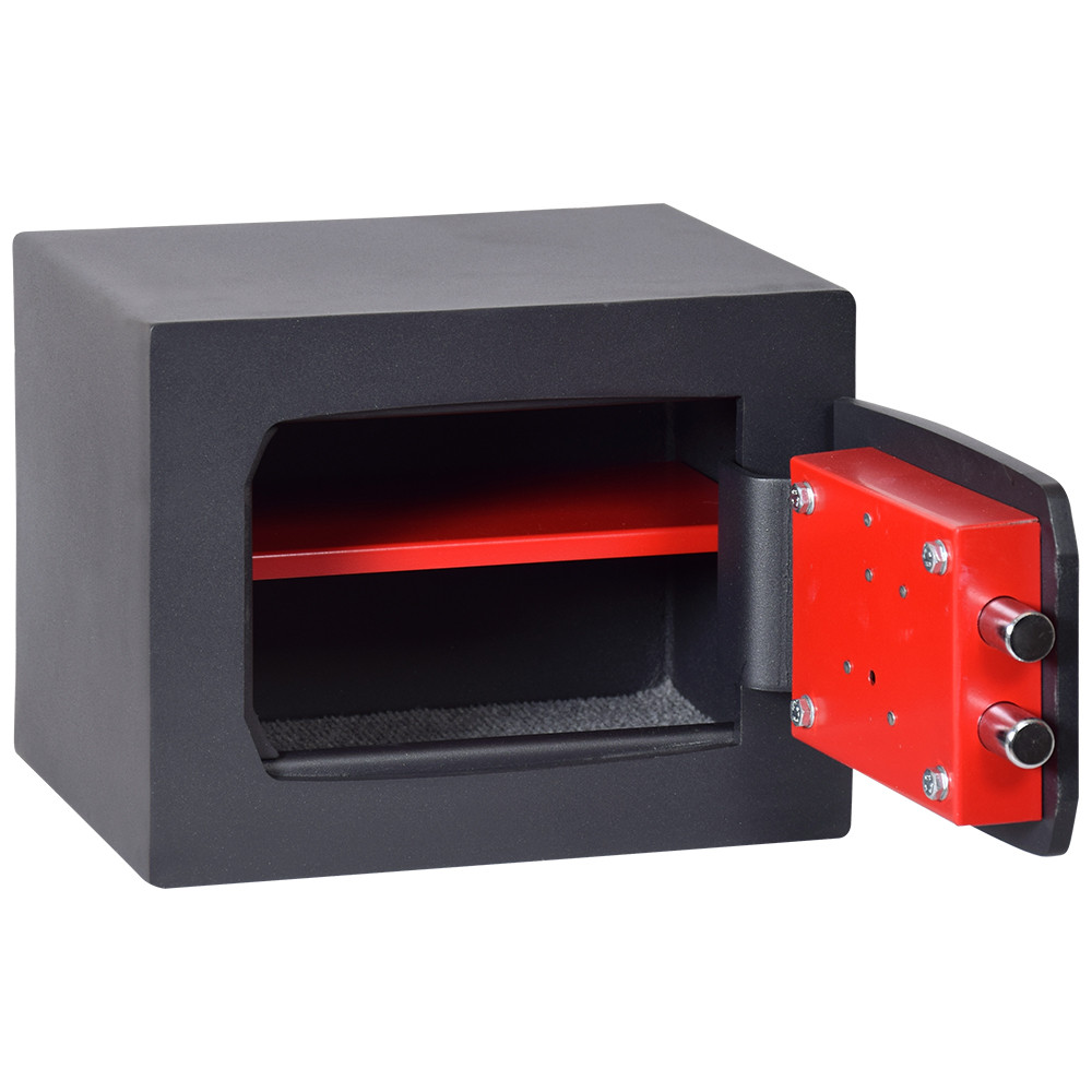 • 3 mm-es acél test megerősített 8 mm-es előlappal• 8 mm-es lézervágott edzett acél ajtó• 90 fokos ajtónyitás rejtett zsanérokkal• egyirányú (MTK 2, 3) vagy háromirányú (MTK 4) zárás 18 mm-es kerek acél hevederekkel• 6 lamellás duplatollú biztonsági zár, kettő darab kulccsal• kivehető polc (magassága nem állítható)• 10 mm-es rögzítő furatok hátrafelé és lefelé• antracit szürke (RAL 7016) színben