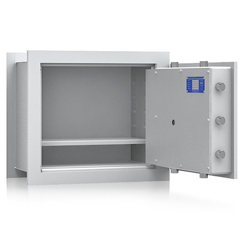 • 5 mm vastag erős acél test• 85 mm vastag, kétrétegű ajtó, 12 mm-es acél borítással• 90 fokos ajtónyitás rejtett zsanérokkal• négyirányú zárás, 25 mm-es kerek, acél hevederekkel• felfúrás ellen mangán acéllappal védett zárszerkezet• süllyesztett fém kilincs• állítható magasságú polcok• világosszürke (RAL 7035) szín