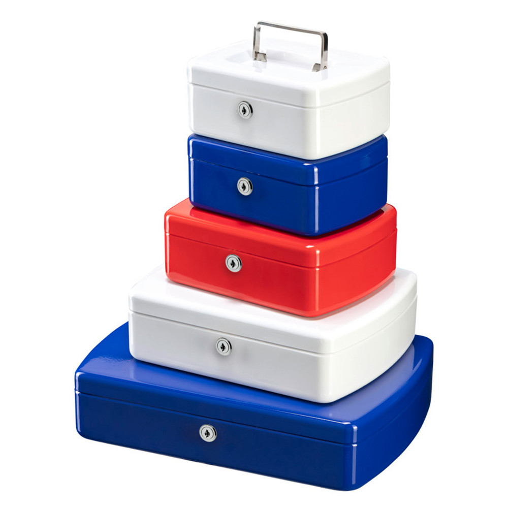 • minőségi pénzkazetta• erős acéllemez test és fedél• masszív belső zsanérozás• elegánsan ívelt forma• süllyesztett fém fogantyú• kivehető műanyag aprópénztartó• alatta hely a bankjegyeknek• minőségi 5 csapos cilinderzár• kettő darab kulccsal• többféle méretben és színben• 2127 típus: aprópénz bedobó nyílás a fedélen (gyerek persely)• aprópénztartó betétek:• 2127 típusnál: nincs rekesz• 2167 típusnál: 2 rekesz (Tray 14)• 2207 típusnál: 5 rekesz (Tray 7)• 2257 típusnál: 5 rekesz (Tray 8)• 2307 típusnál: 5 rekesz (Tray 17)• betétek külön is rendelhetőek• nyerskulcs típusa: 65L