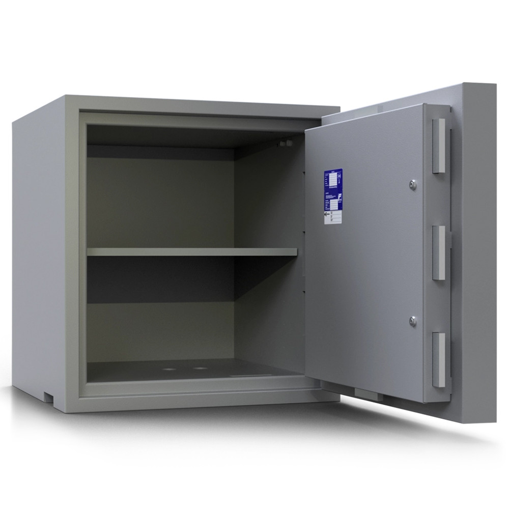 • 80mm vastag acél test, speciálisan megerősített beton töltettel (maximális védelem lángvágás és flexelés ellen)• 160mm vastag acél ajtó (ebből 70mm extra erős beton)• 60mm-re kiemelkedő elegáns alumínium kilincs• 180 fokos ajtónyitás, erős külső zsanérokkal• rögzítő fülek a zsanéroldalon (zsanérlevágás ellen)• háromirányú zárás acél hevederekkel (16x120mm)• ipari gyémánt bevonat az összes hevederen• rozsdamentes belső szerkezet és kilincsmű (werk)• mangán acéllappal védett zárszerkezet (fúrás ellen)• nagyméretű, üveglapos passzív zár (ütésre, felfúrásra, átvágásra és zárbeütésre is aktiválódik)• üveg berobbanása után a páncélszekrény nem nyitható• hátsó és oldalsó kábelátvezető furat (riasztókábelnek)• felfogató lap rezgésérzékelőnek (testen és az ajtón is)• 22mm-es rögzítő furat lefelé (műanyag kupakkal)• kivehető és állítható magasságú polc(ok)• világosszürke (RAL 7035) színben (kétszínű ajtóval)• többféle zárkombinációval és kiegészítővel is rendelhető• prémium kategóriájú páncélszekrény igényeseknek