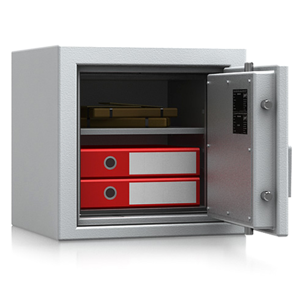 • 30 perces tűzállóság dokumentumok részére• 840C-on a belső hőmérséklet 150C alatt marad• duplafalú acél test, speciális hőszigetelő töltettel• 78 mm vastag, duplafalú acél ajtó, speciális töltettel• speciális füst,- és vízszigetelő tömítés az ajtóban• 180 fokos ajtónyitás a külső zsanéroknak köszönhetően• háromirányú zárás, 25 mm-es kerek, acél hevederekkel• erős rögzítő fülek a zsanéroldalon• felfúrás ellen mangán acéllappal védett zárszerkezet• Vaihingen 9 és 10 duplaszárnyú ajtóval készül• állítható magasságú polcok• rögzítő furat lefelé• világosszürke (RAL 7035) szín
